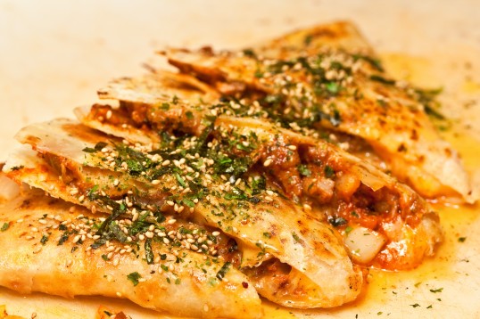 Place peppers, onions and pineapples to cook in a deep roasting pan, with 2 tablespoons of oil. After 2-3 minutes, add meat, salted and peppered and leave about 5-7 minutes, until it is opaque. Mix sauces with ginger and 2 tablespoons of water and cook the meat. Allow another 2-3 minutes until sauce thickens. Stir fried up about 1 minute, after adding  diced pineapple.